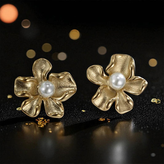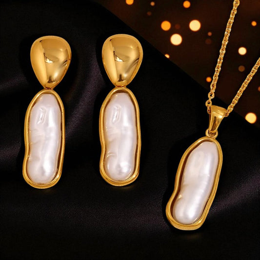 Conjunto - Collar/Aretes Florece de Perlas Dorado / Pearl Blooms