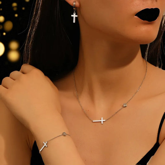 Conjunto - Collar/Aretes/Pulsera Salvacion Gracia Plateada / Salvation Grace