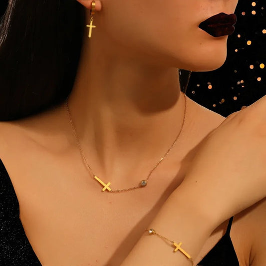 Conjunto - Collar/Aretes/Pulsera Salvacion Gracia Dorada / Salvation Grace