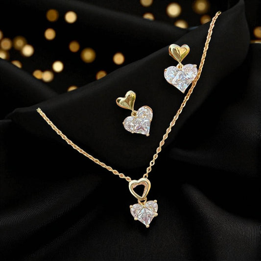 Conjunto - Collar/Aretes Corazón y Corazón Brillante / Shine