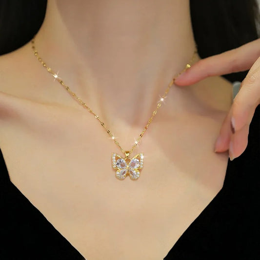 Conjunto - Collar/Aretes Brillo de Mariposas / Butterfly Glitter