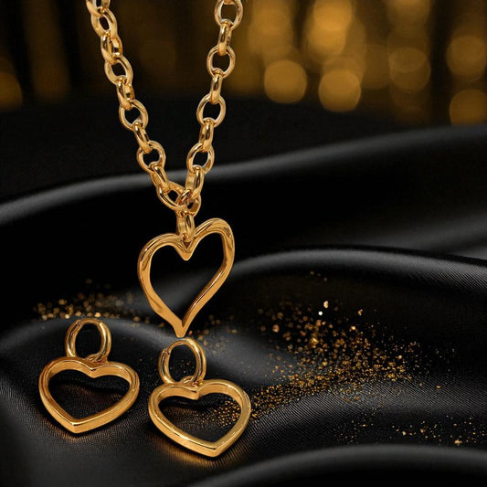 Conjunto - Collar/Aretes Hermoso y Gran Corazon Especial Dorado / Beautiful and Big Special Heart