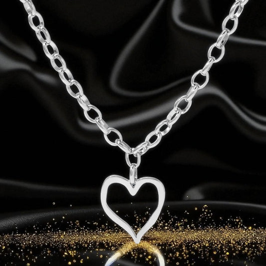 Conjunto - Collar/Aretes Hermoso y Gran Corazon Especial Plateadoo / Beautiful and Big Special Heart
