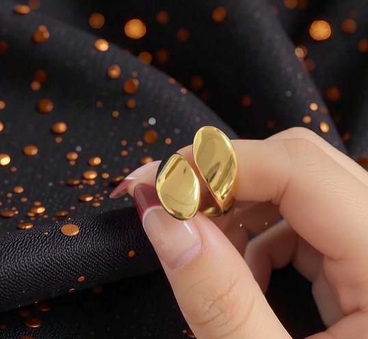Anillo Semilla en acero inoxidable 316 con chapado en oro auténtico mediante recubrimiento iónico. Diseño geométrico exagerado y artístico que captura la esencia de lo natural con un toque contemporáneo. Disponible en tonos oro y plata, este anillo de 15g combina elegancia espiritual con resistencia al agua y deslustre. Perfecto para festivales y ocasiones especiales donde deseas expresar tu individualidad con una pieza única que refleja tu conexión con la naturaleza.
