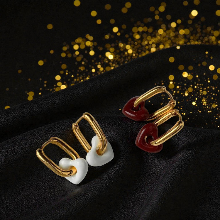 Arete Blanco "Cántico" Estos delicados aretes de gota capturan la esencia de la elegancia minimalista. Confeccionados en acero inoxidable 304 con enchapado dorado y blanco, combinan durabilidad con un diseño atemporal. Su forma de corazón transmite calidez y significado, mientras que su peso ligero (12g) garantiza comodidad durante todo el día. Ideales para quien busca accesorios versátiles que acompañen desde momentos cotidianos hasta ocasiones especiales, estos aretes reflejan un estilo sofisticado y consciente.