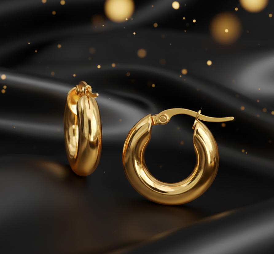 Aretes redondos dorados que combinan elegancia minimalista con versatilidad. Elaborados en acero inoxidable 304 con chapado en oro de 18k mediante electrochapado, ofrecen durabilidad y brillo duradero. Su diseño simple y atemporal los hace perfectos para cualquier ocasión, desde eventos especiales hasta el uso diario. Ligeros y cómodos, estos aretes reflejan una belleza serena y sofisticada que complementa cualquier estilo personal.