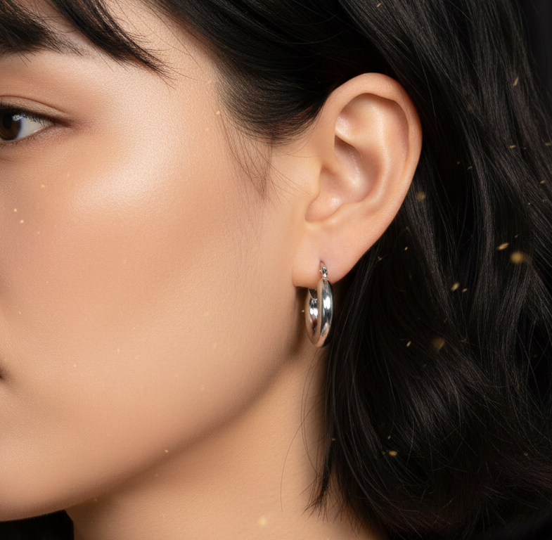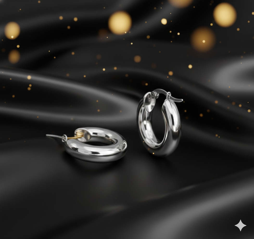 Arracadas Aura en acero inoxidable 304 con acabado plateado y chapado en oro de 18k. Diseño circular minimalista que combina elegancia atemporal con versatilidad. Perfectas para el día a día o para ocasiones especiales, estas arracadas reflejan tu esencia con sutileza y sofisticación. Elaboradas mediante electrochapado de precisión, ofrecen durabilidad y brillo duradero. Un accesorio esencial que trasciende tendencias, complementando cualquier estilo con gracia natural.