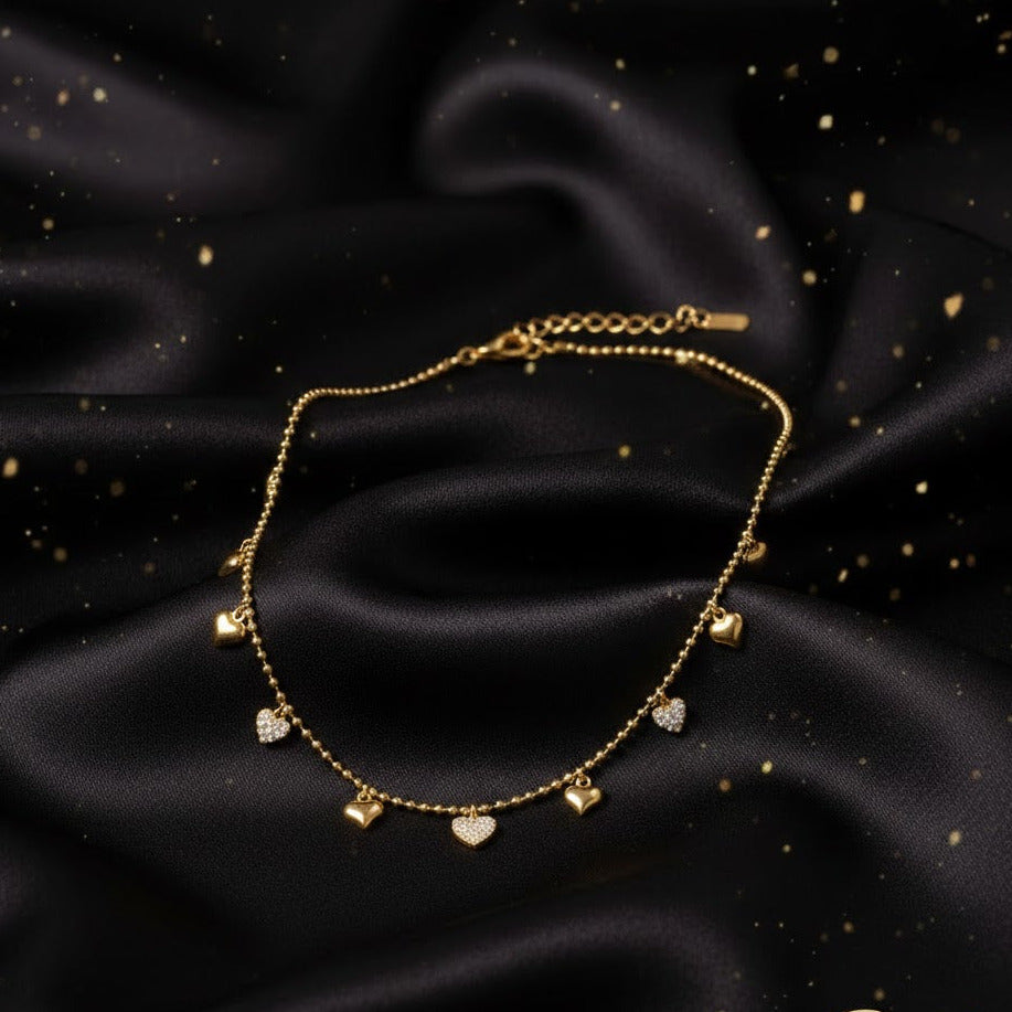 Pulsera de acero inoxidable 304 con diseño geométrico en forma de corazón, chapada en oro de 18K mediante proceso PVD. Adornada con incrustaciones de circón que capturan la luz con elegancia. Cierre de langosta seguro y resistente. Perfecta para viajes, citas especiales y celebraciones, esta pieza versátil complementa cualquier estilo en todas las temporadas. Ligera y cómoda, combina sofisticación con un toque espiritual que refleja tu esencia femenina.