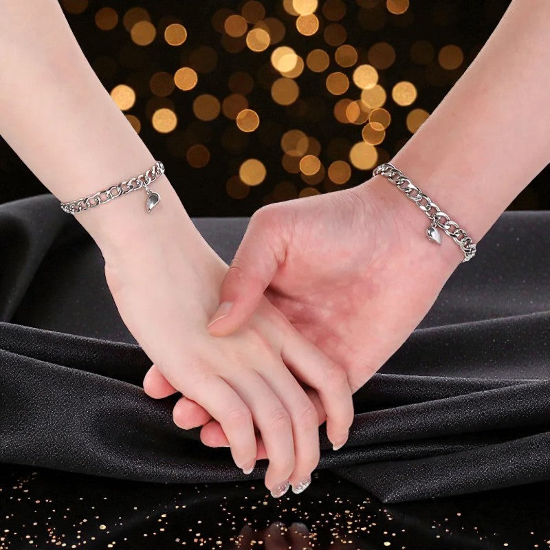 Dos pulseras de acero inoxidable 304 que simbolizan la conexión y la promesa compartida. Diseñadas en plateado con detalles en forma de corazón, cada pieza cuenta con un cierre de langosta seguro y resistente. El enchapado en oro auténtico de 18 quilates mediante proceso PVD añade un toque de lujo duradero. Perfectas para uso diario, estas pulseras unisex combinan elegancia minimalista con un significado profundo. Ideales para celebrar vínculos especiales o como regalo que trasciende lo material. Peso total: 28g.