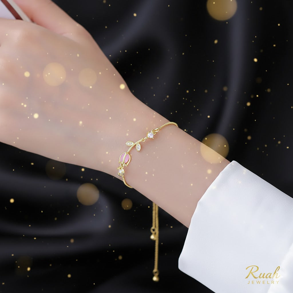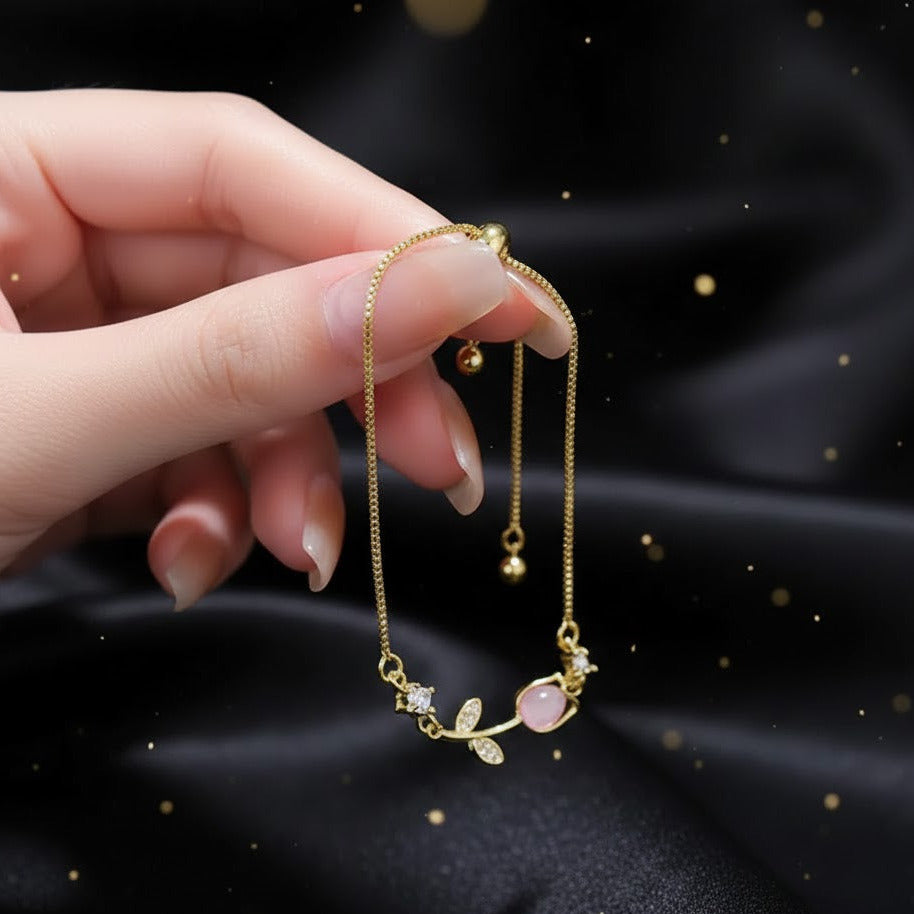 Pulsera de cobre enchapado con diseño de hadas que captura la magia del mundo natural. Presenta incrustaciones de piedra de ojo de gato, conocida por sus propiedades protectoras y su brillo hipnotizante. El delicado patrón floral añade un toque etéreo y femenino, perfecto para el uso diario. Con un peso ligero de apenas 3 gramos, ofrece comodidad sin comprometer la elegancia. Una pieza espiritual que conecta con la energía de la naturaleza, ideal para quien busca llevar consigo un símbolo de protección y belleza en cada momento.