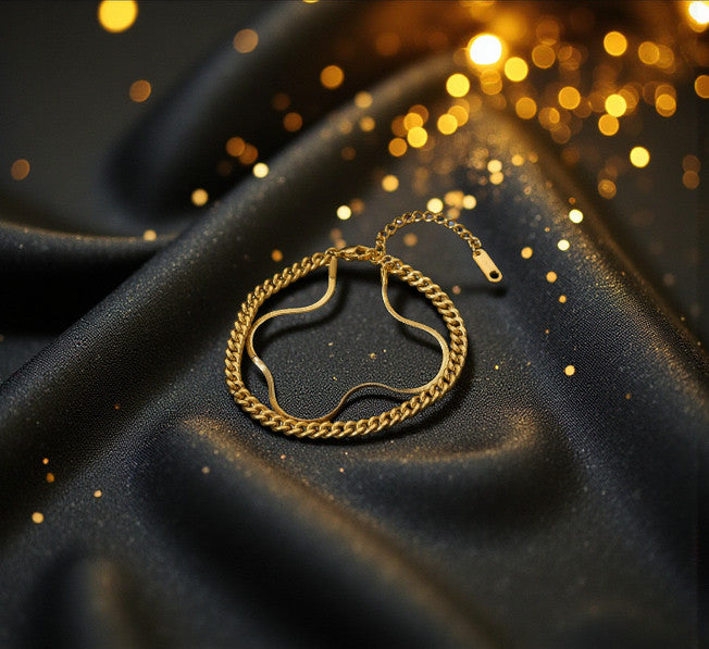 Pulsera Dorada "Linaje Vida" - una pieza unisexo que fusiona geometría moderna con artesanía refinada. Elaborada en acero inoxidable 304 con chapado en oro auténtico mediante proceso PVD, esta pulsera presenta una cadena de eslabones cubanos tejida a mano que captura la luz con elegancia. Resistente al agua y al deslustre, es perfecta para el uso diario sin comprometer su brillo dorado. Su cierre de langosta garantiza seguridad, mientras que su peso ligero de 5g la hace cómoda de llevar. Un accesorio versátil que complementa cualquier estilo, desde lo casual hasta lo sofisticado, con la durabilidad que mereces.
