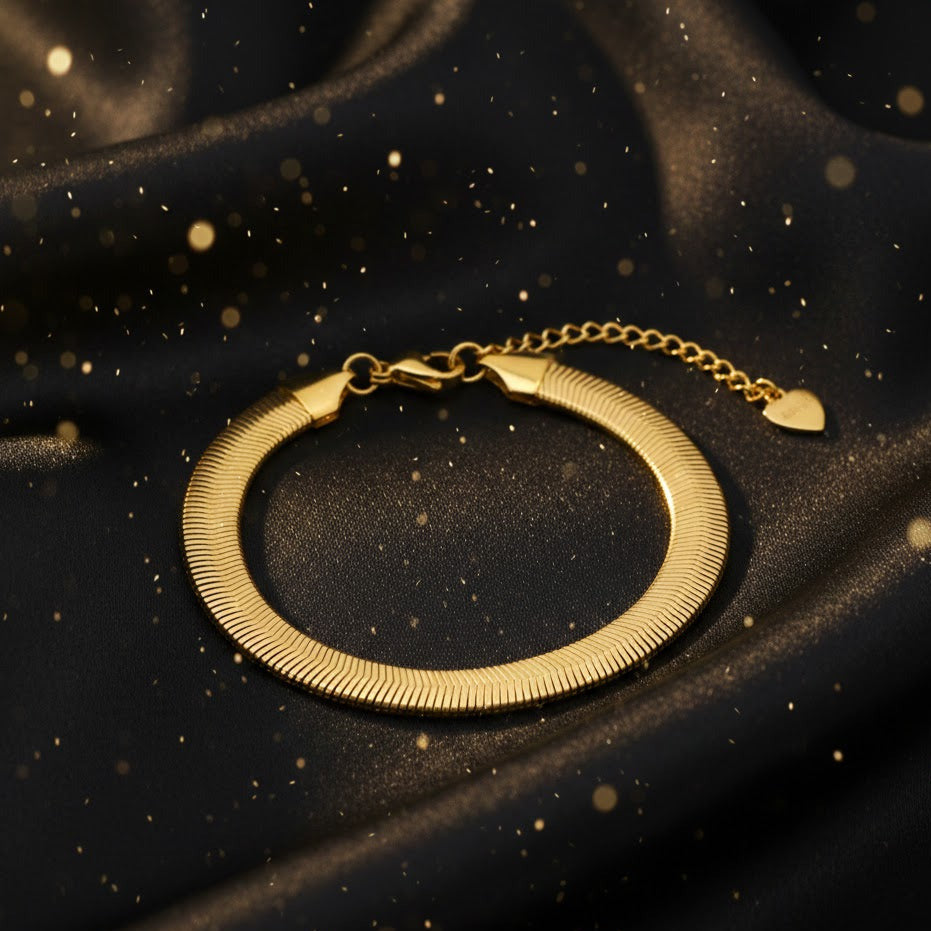 Pulsera Dorada "Corona Ester" en acero inoxidable 201 con diseño geométrico moderno y unisexo. Cadena de eslabones cubanos artesanales con cierre de langosta seguro. Chapado en oro auténtico mediante proceso PVD de alta durabilidad. Resistente al agua y al deslustre, perfecta para uso en la calle. Colgante en acero inoxidable 304 que combina elegancia contemporánea con espíritu atemporal. Una pieza versátil que trasciende géneros, ideal para quien busca joyería sofisticada y duradera.